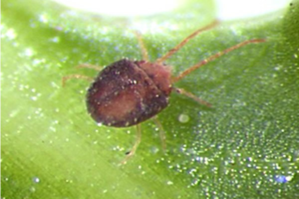 Clover mites are small (1/100 of an inch long), oval-shaped reddish-brown mites and occasional household pests. A clover mite’s front legs are typically longer than the other three pairs of legs and can be mistaken for antennae.